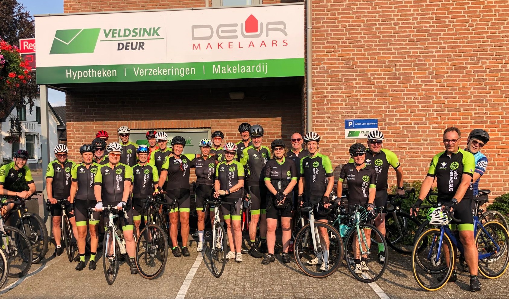 De start met groepsfoto en speech van onze voorzitter was bij het kantoor van Veldsink-Deur in Leersum. Wat klimmen in het begin en dan lekker met de wind in de rug over de dijk terug. En uiteraard was er weer een gezellige en smakelijke finale in de Proloog. Met dank aan onze sponsor Veldsink-Deur!